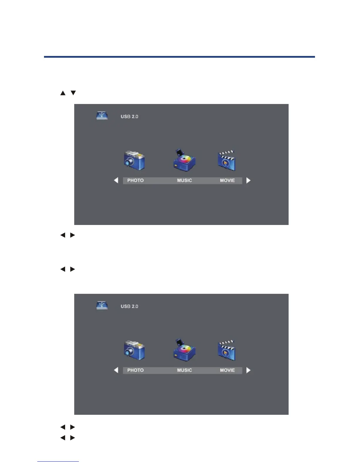 NOTE: Before operating Media menu, plug un a USB devise, then press SOURCE button to set