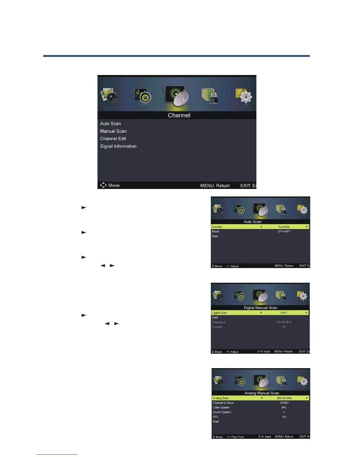 Channel menu (DVT & ATV mode)