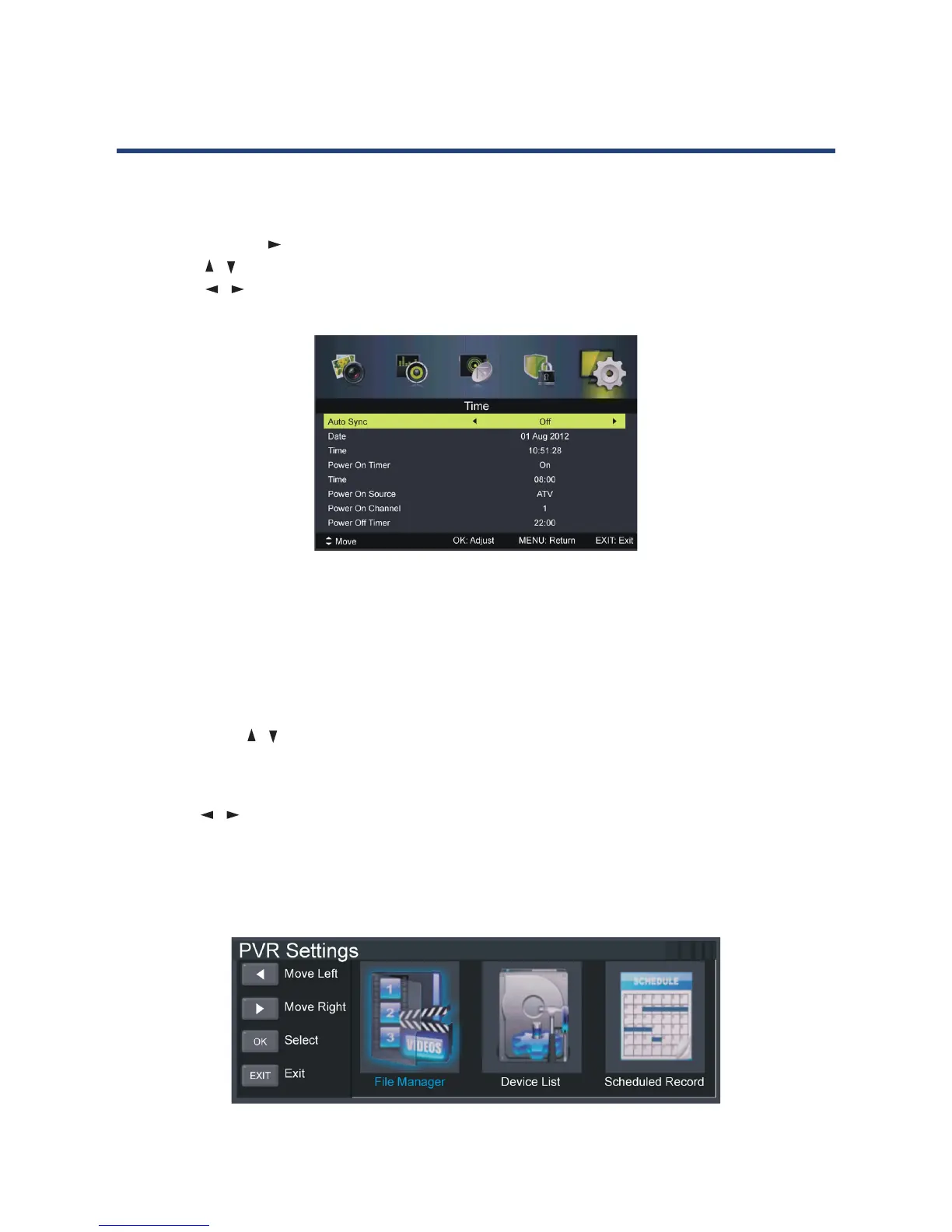 • Highlight the date and (or) time and press OK to enter the adjusting page.