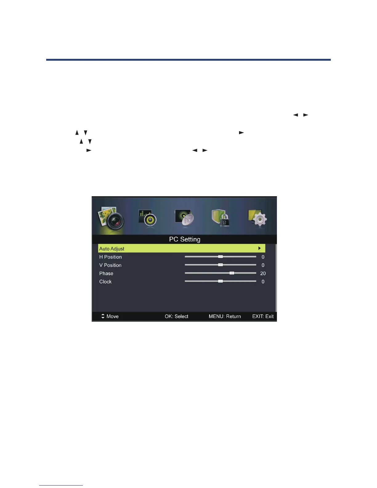 NOTE: For other menu operations in PC mode, please refer to the menu operations of DTV