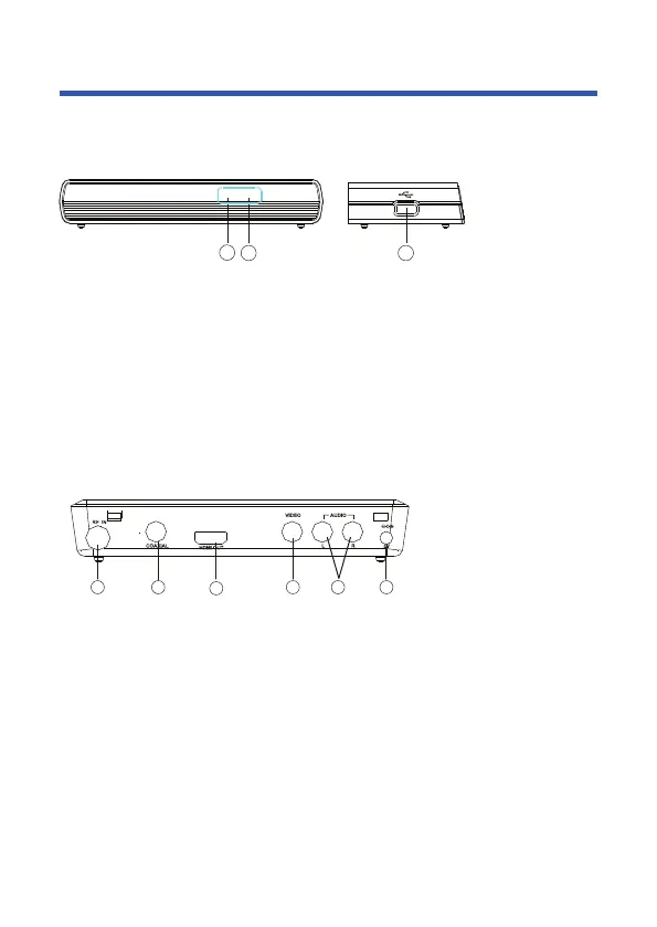 1. STANDBY INDICATOR: Used to visually show power state of the set top box,