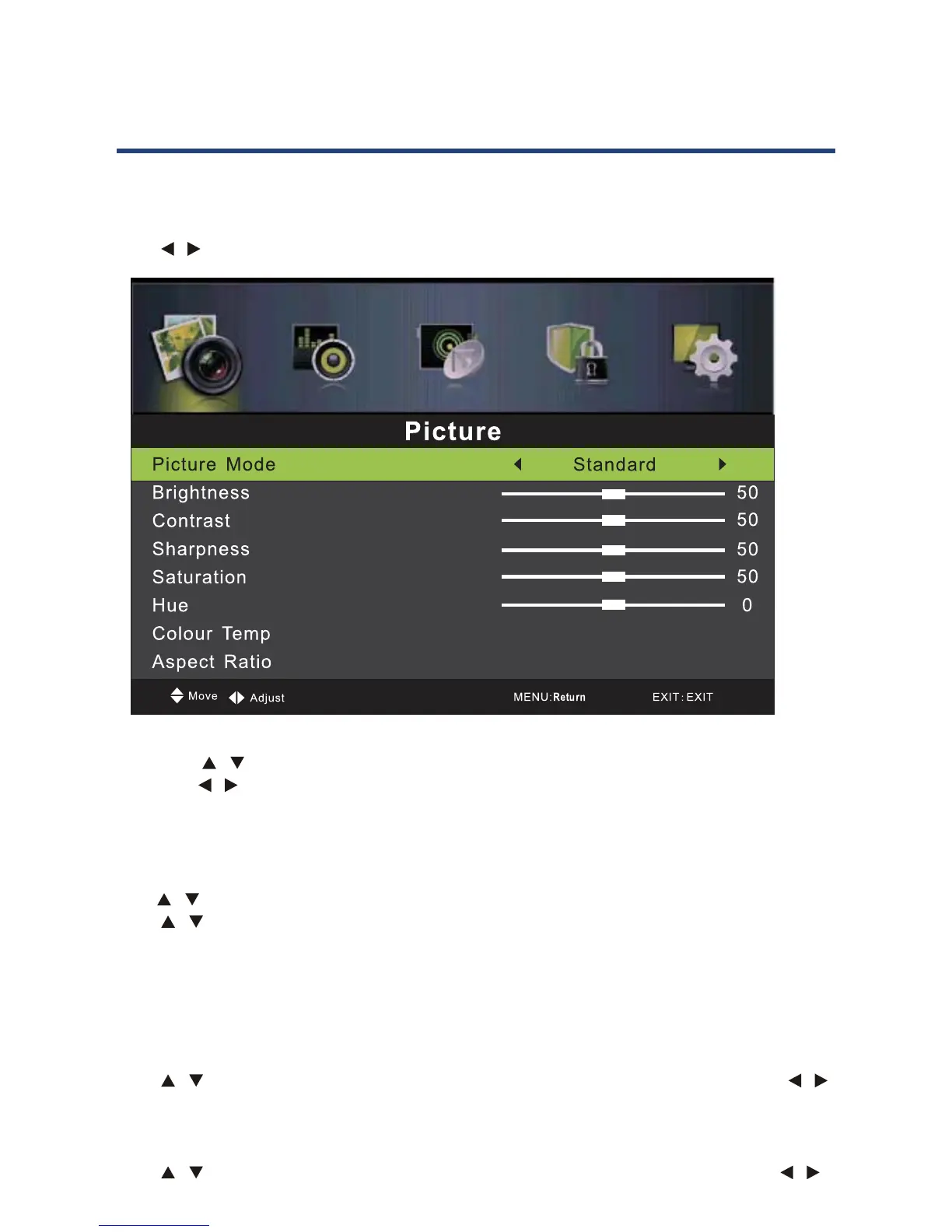 Press / button to select Picture Mode, then press OK button to enter sub-menu.