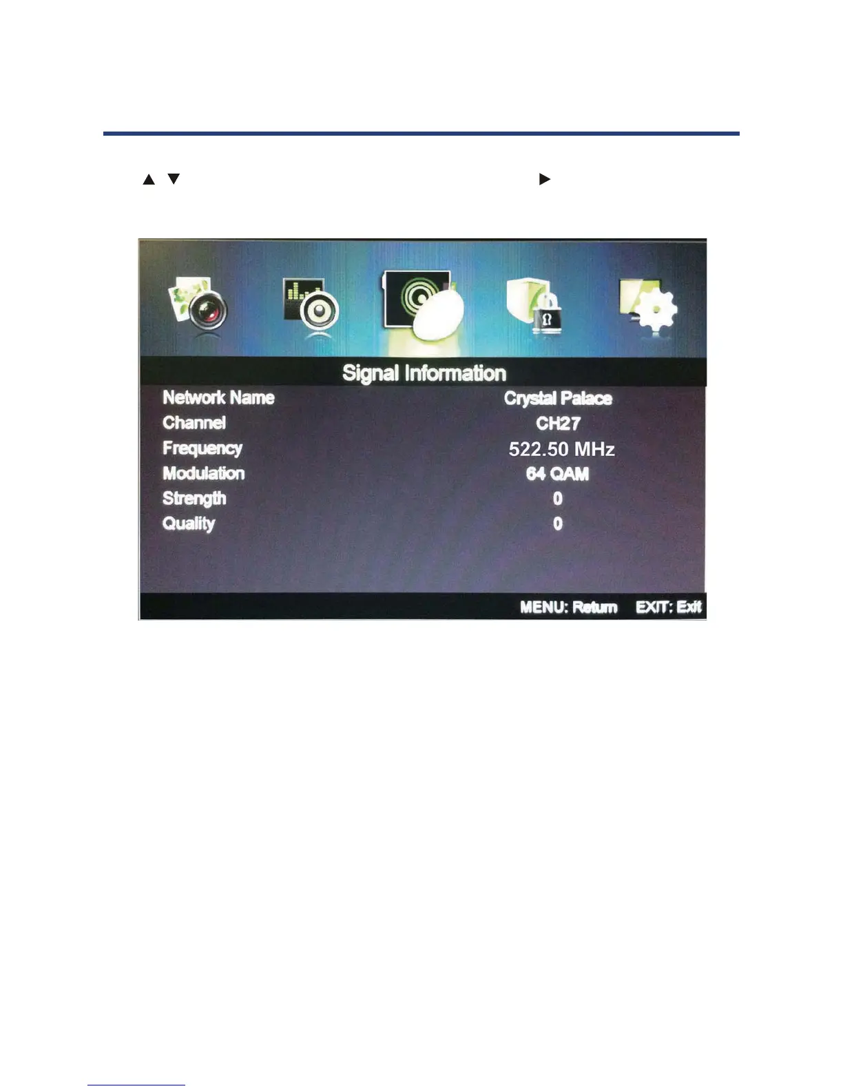 Press / button to select Signal Information, then press Ok / button to select the