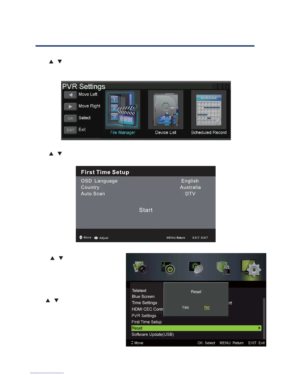 Press / button to select PVR SETTING, then press Ok button to enter submenu. It will