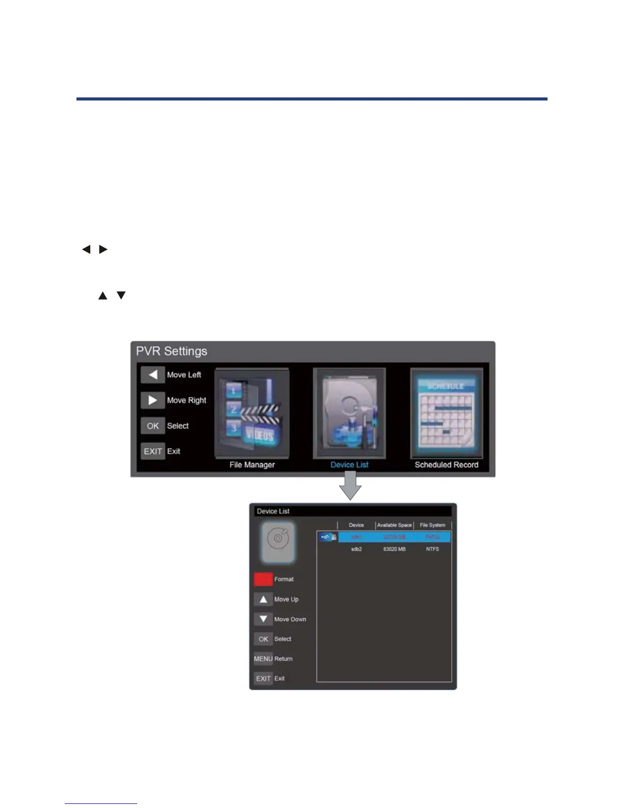 / buttons and then press OK button to select and access the DEVICE LIST interface.