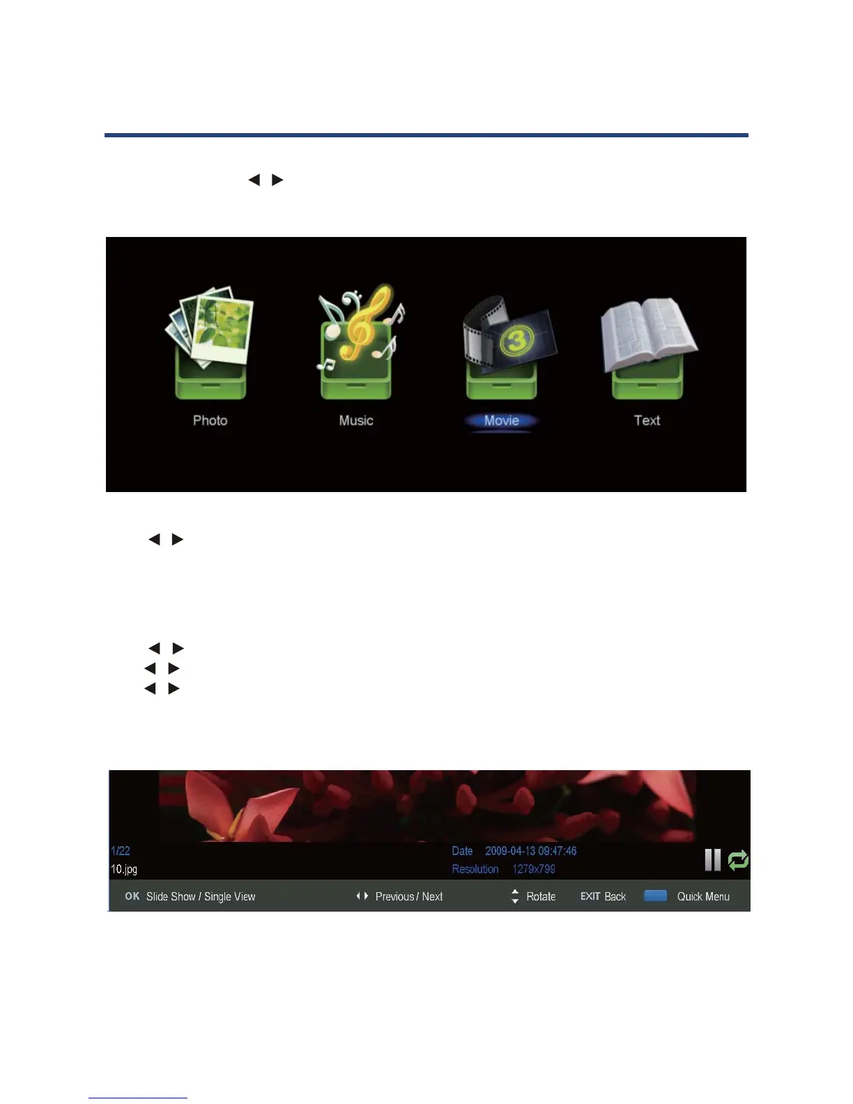 Press / button to select folder or le you want to watch, then press OK button to conrm.
