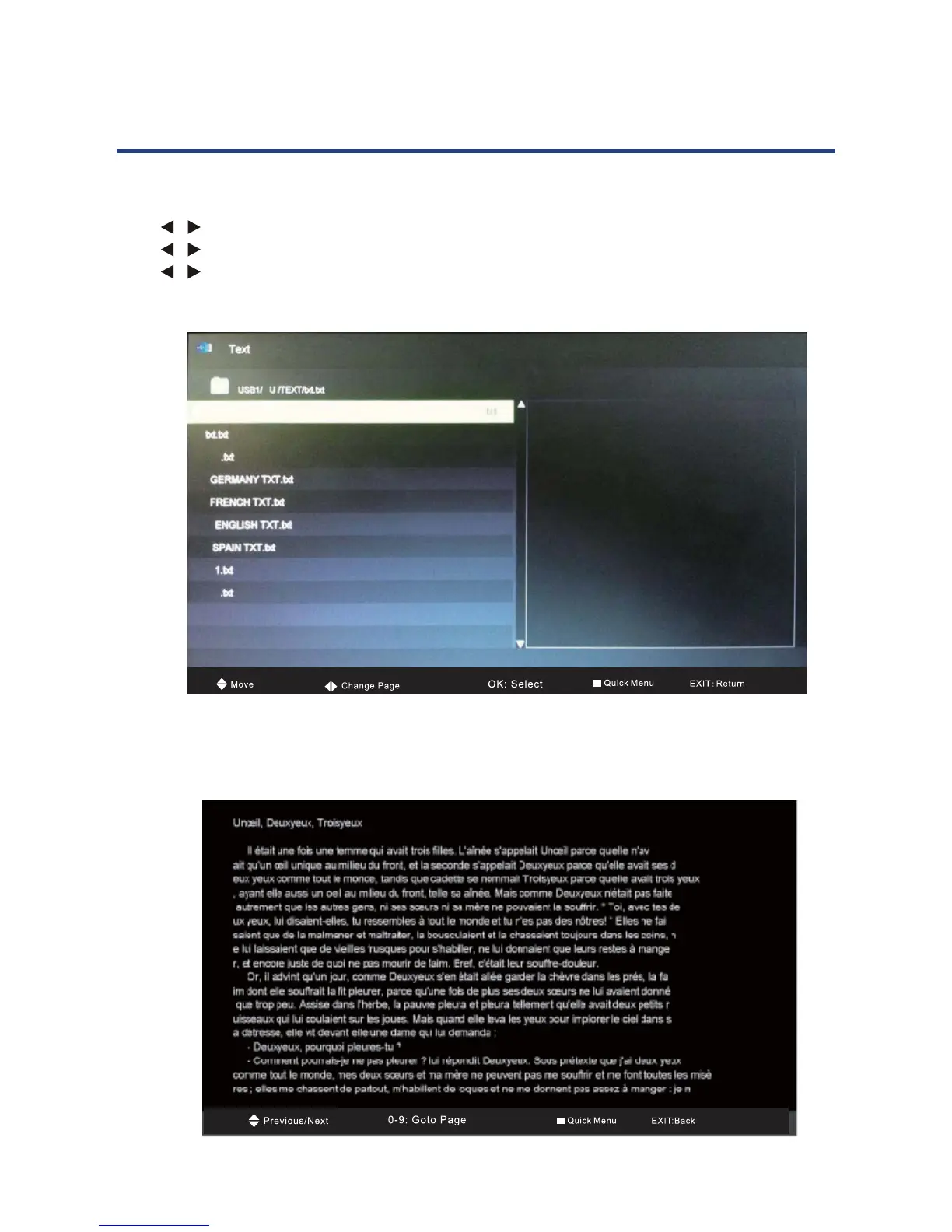 Press / button to select TEXT in the main menu, then press OK button to enter.