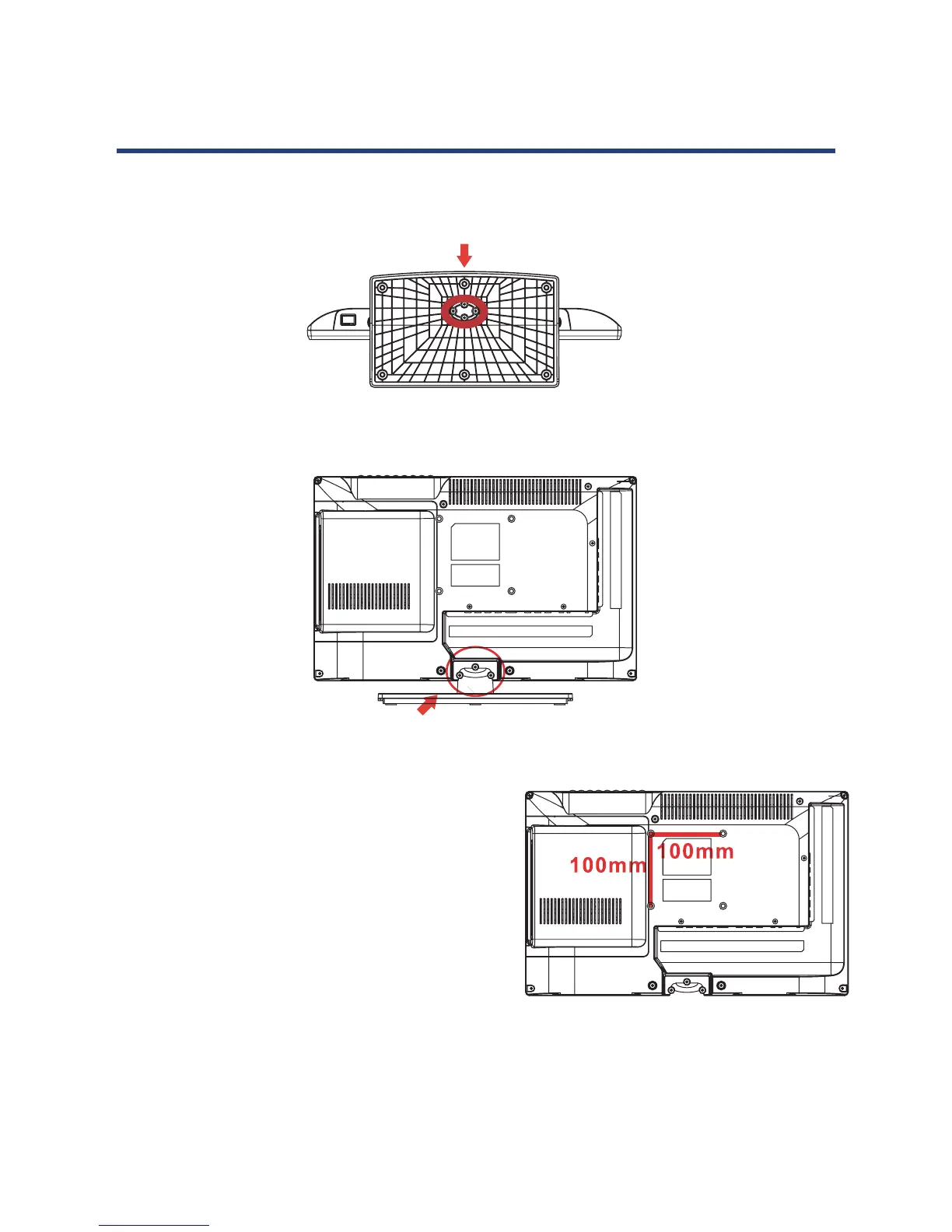 To remove the stand, remove the screws in the circled area and the neck will c