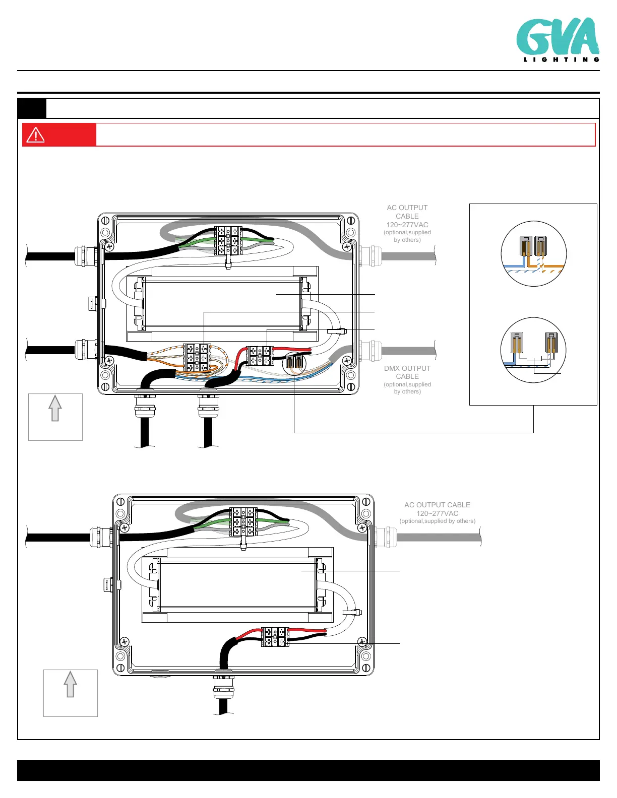 NOTE: Terminate return DMX output (+) and (-) with 120 OHM resistor (GVA PN. 230727).