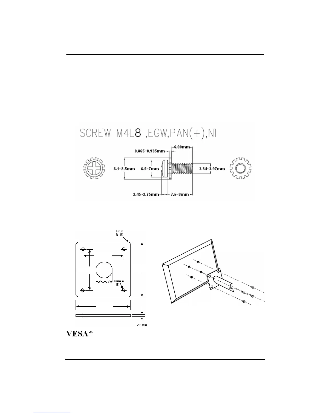 Fix UL listed wall mount bracket on the back of the monitor with screws, the specification of
