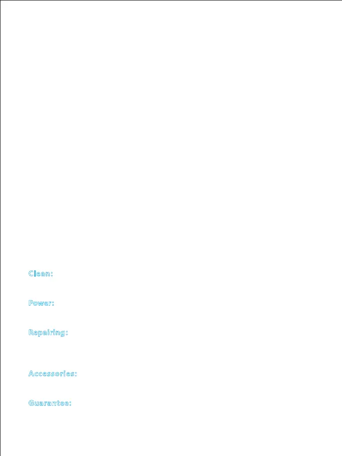 Repairing:If there is fault or performance degradation, do not unpack the shell by