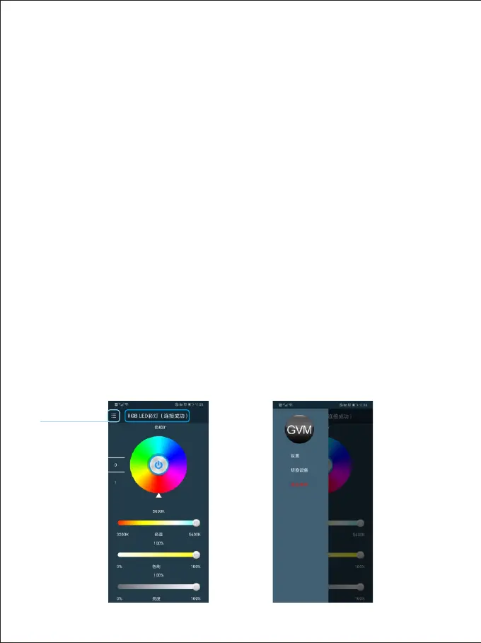 phone displays "connected GVM - LED", return to the APP main interface,