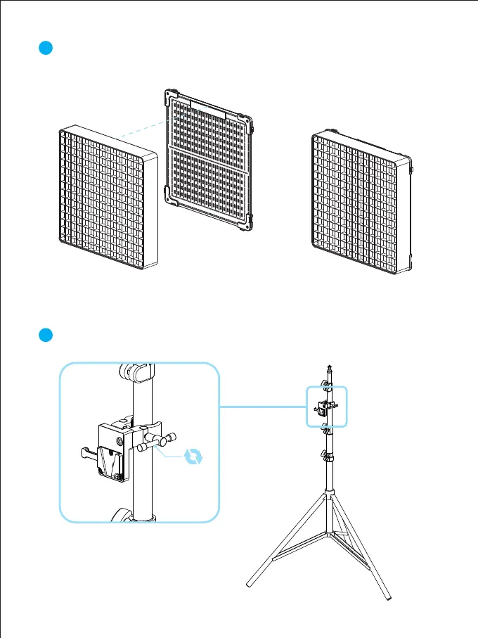 Attach the power clamp to the light stand and tighten the fixing knob.