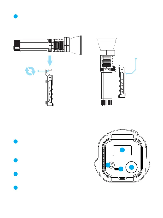Turn the knob clockwise to fix the lamp on the handle, turn it counterclockwise