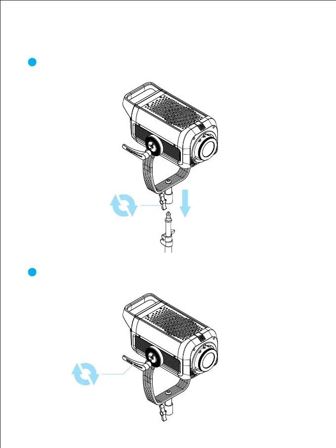 Loosen the light stand fixing knob, install the light to the light stand as shown
