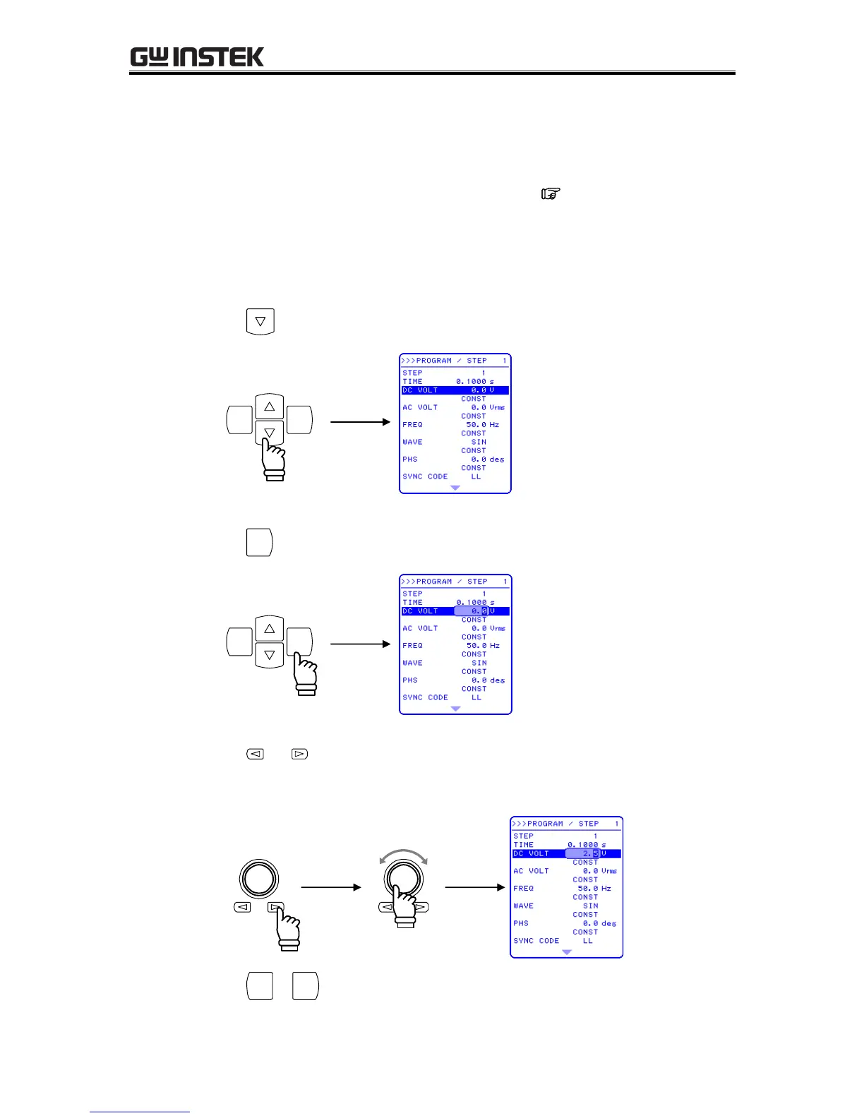 The steps for opening the PROGRAM screen are described in 4.4.2 Sequence