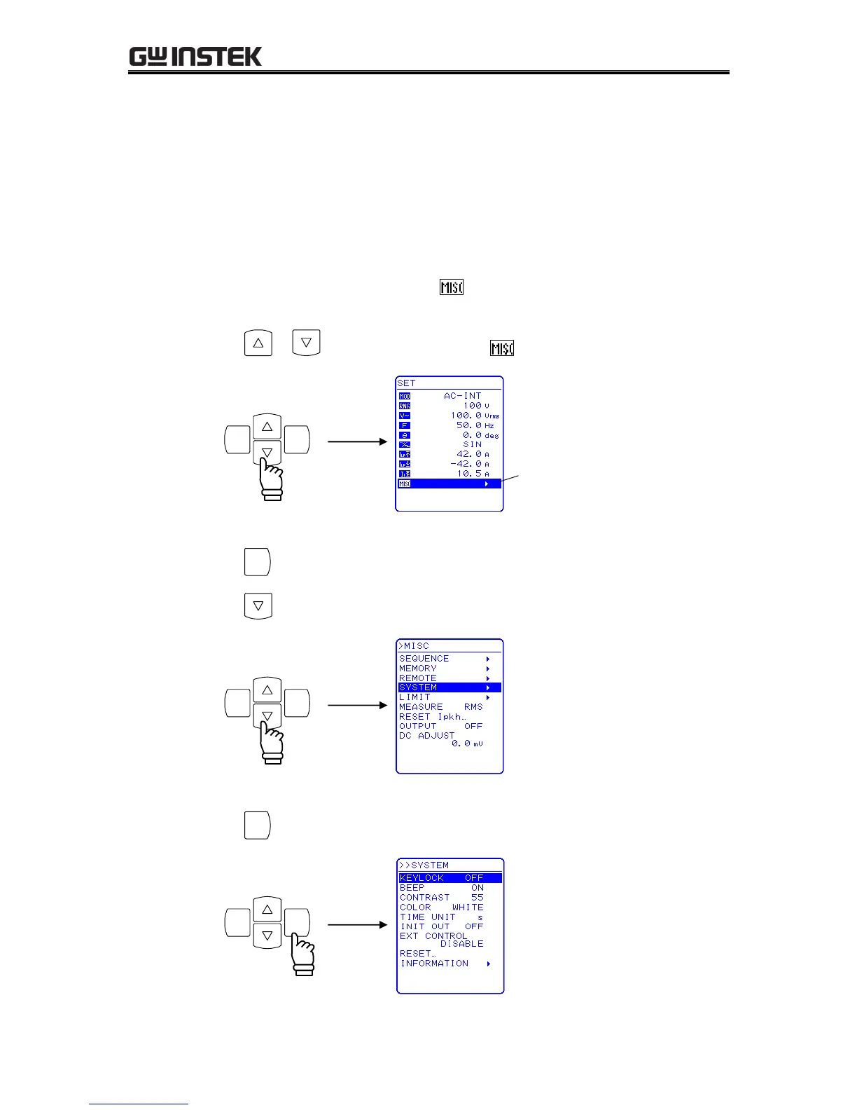 Select the SYSTEM menu from the MISC menu