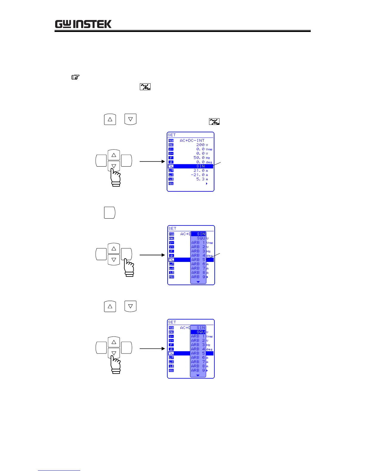To select a waveform, select in the SET menu.