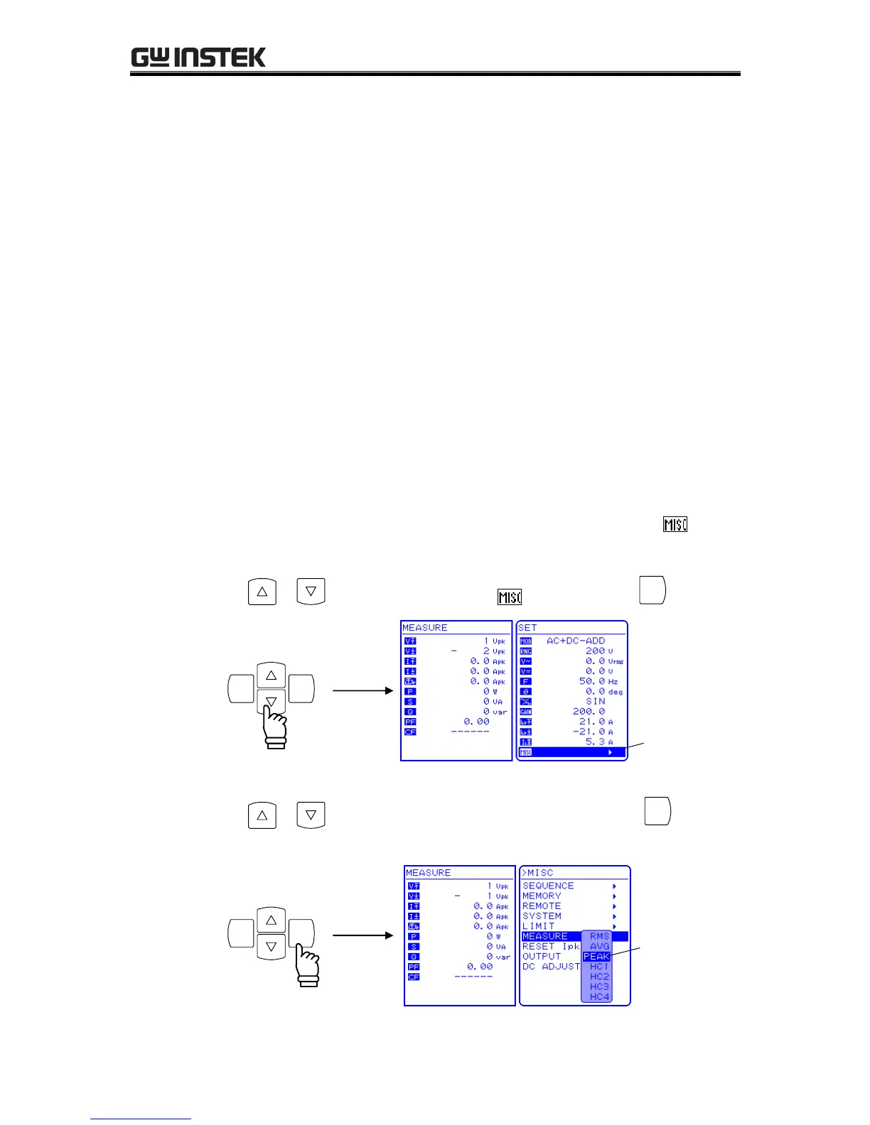 To view the harmonic measurement window, select “MEASURE” in the MISC menu .