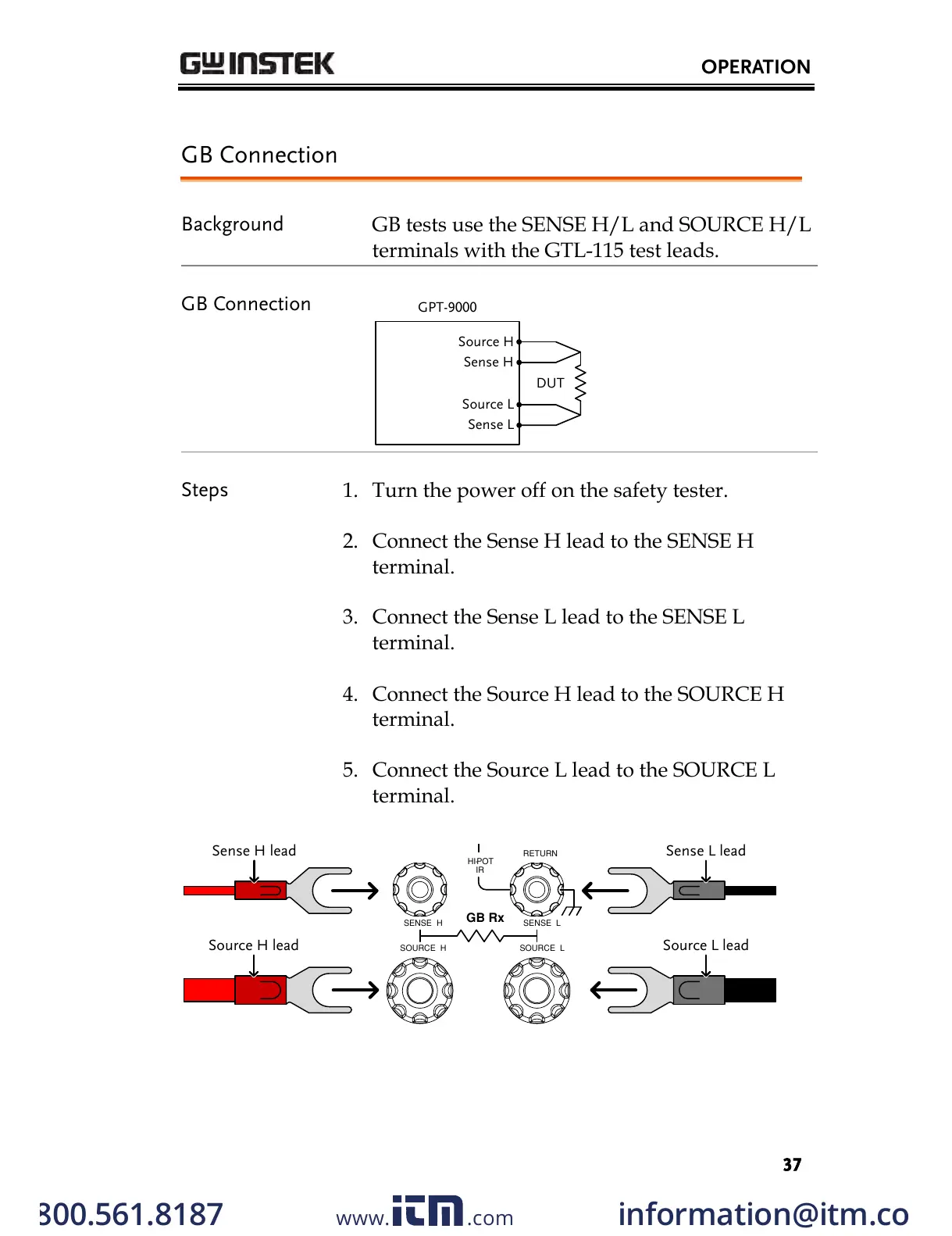 terminals with the GTL-115 test leads.