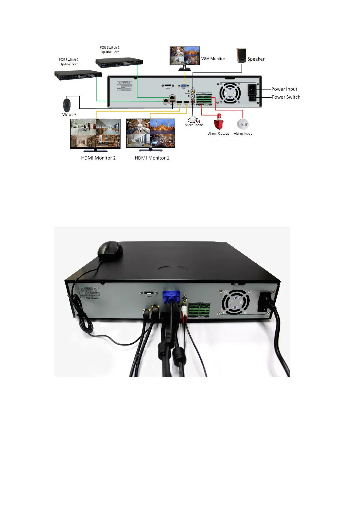 Please use attached power adapter to connect NVR. Before powering on, make sure the cables