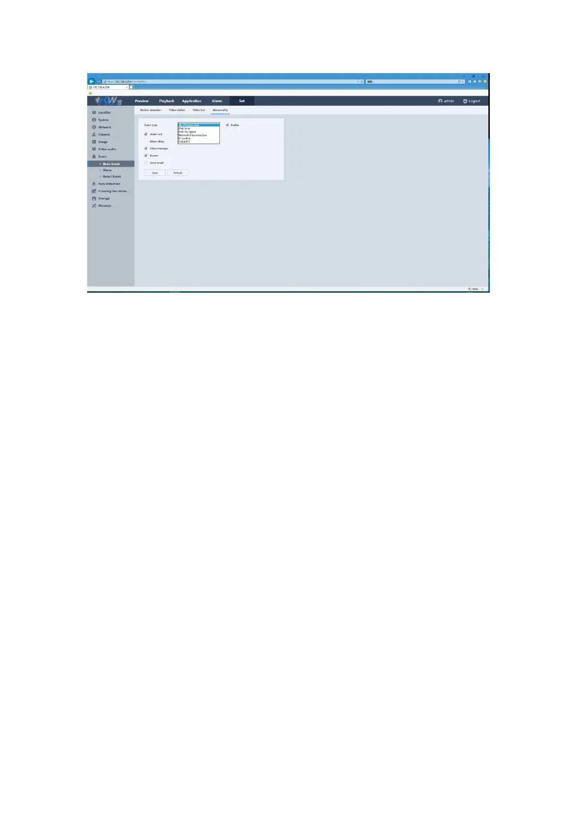 Click the Set ->Event ->Alarm ->Alarm In. As show in figure 5-37.