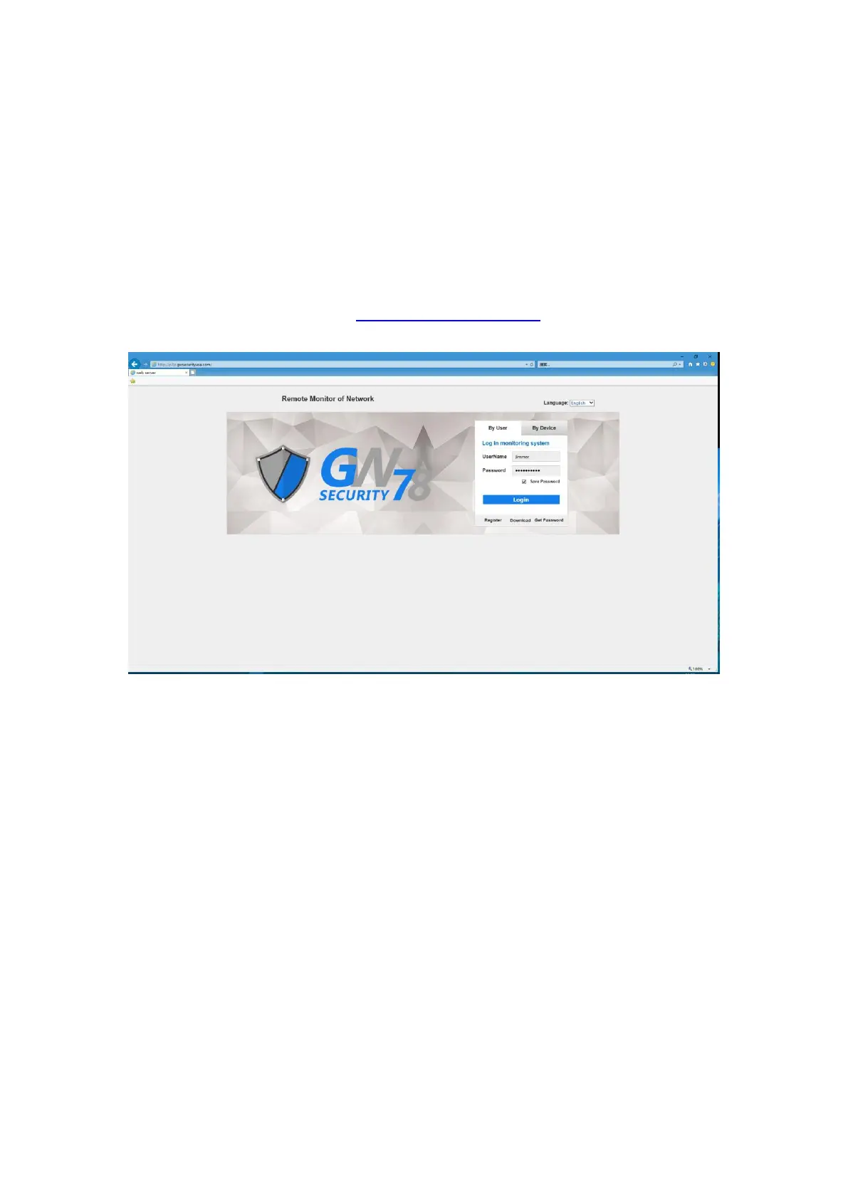 Open the web browser and input the http://p2p.gwsecurityusa.com , and press the Enter key to