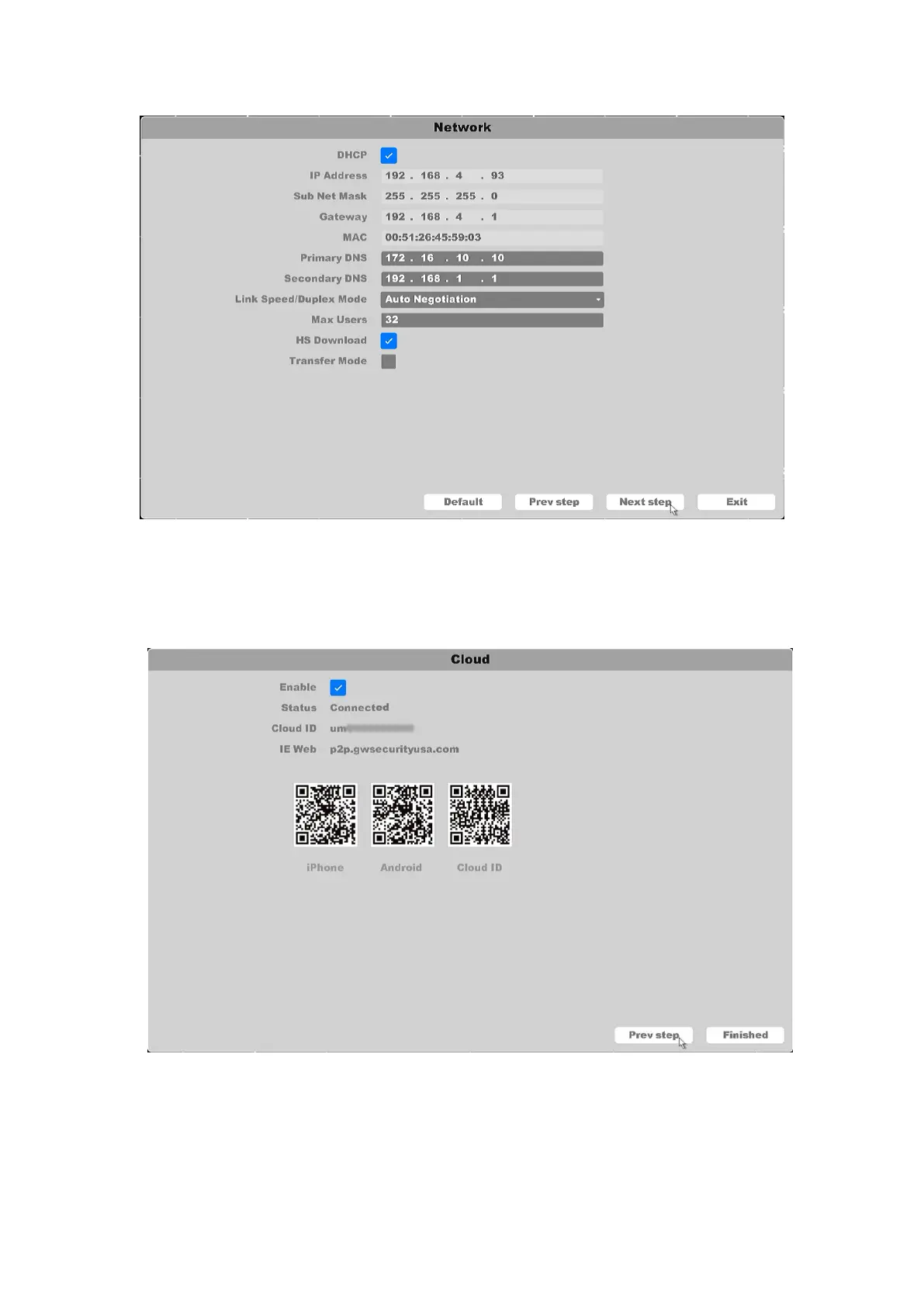 6. Click Next button after you configured the network parameters, you enter the cloud