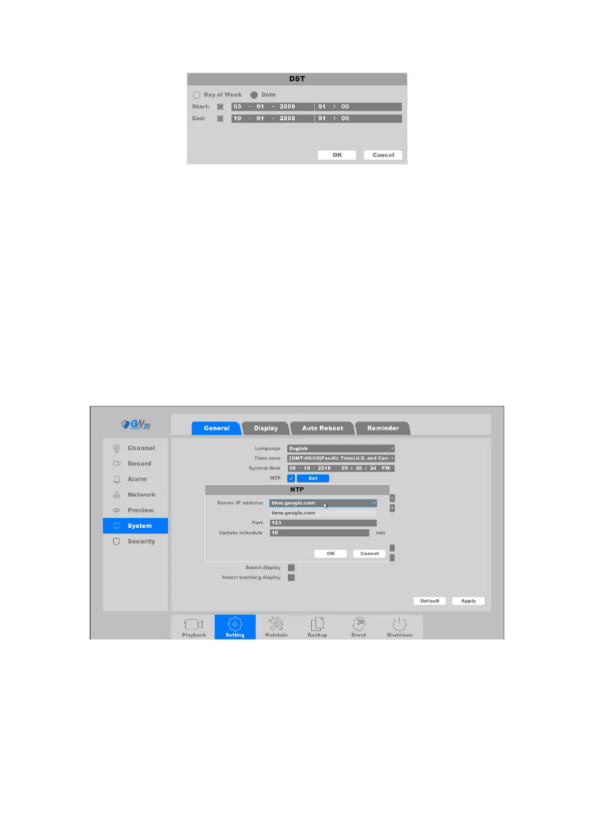 NTP: A Network Time Protocol (NTP) Server can be configured on your NVR to ensure