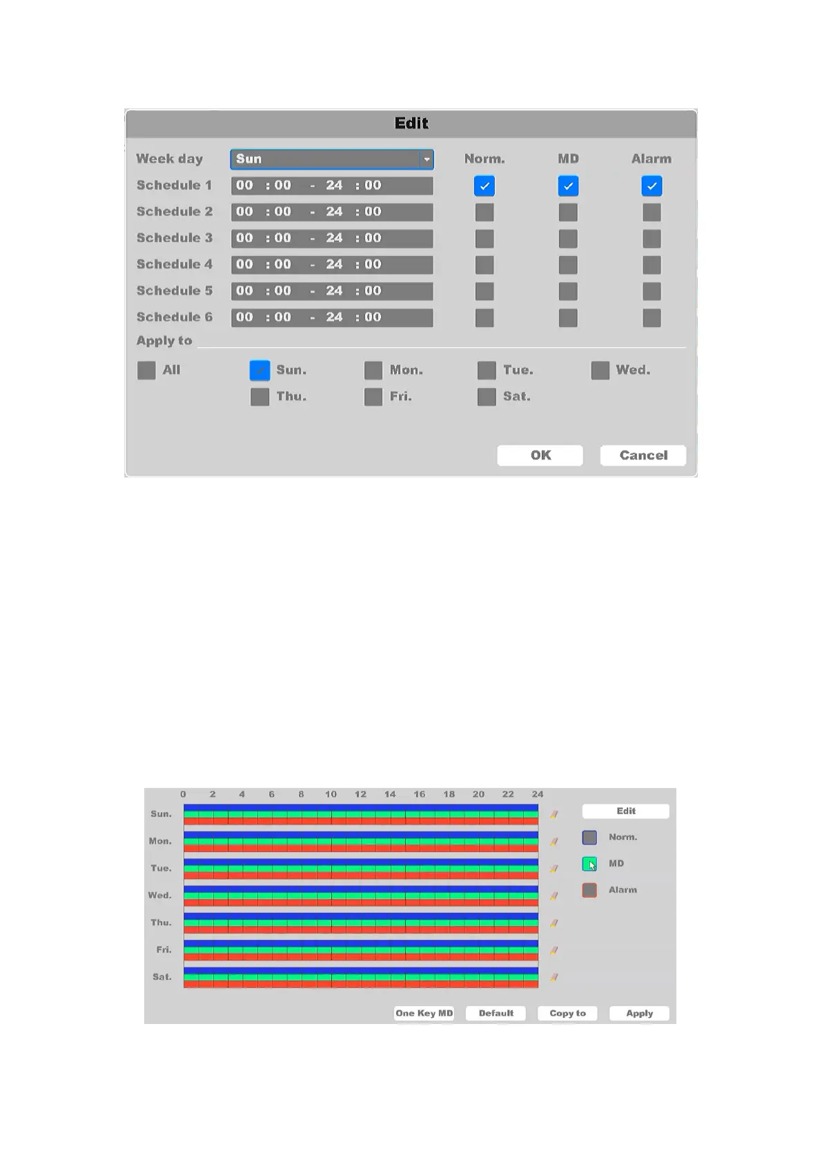 Schedule 1-6: The time slot for the record, you can set 6 time slots for one day.