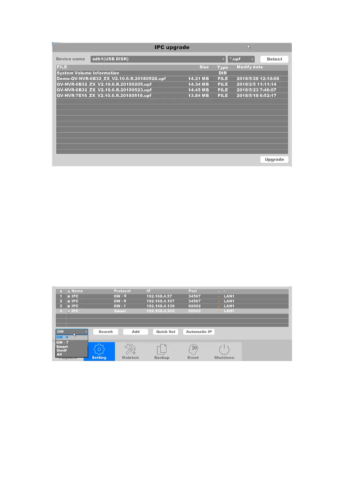 Automatic IP: Auto assign IP address to the IP cameras. The assigned IP address are at