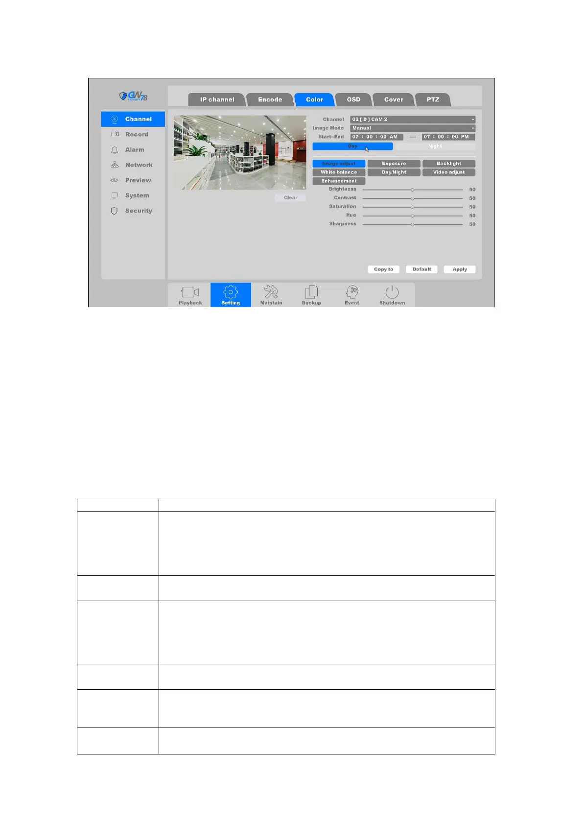 supports 2 period settings (Day period & Night period). You can set independent image settings
