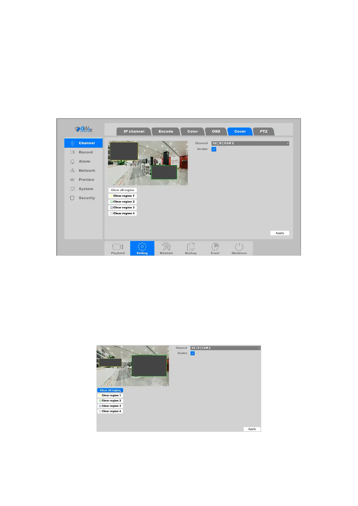 operator. The privacy mask can prevent certain surveillance areas to be viewed or recorded.
