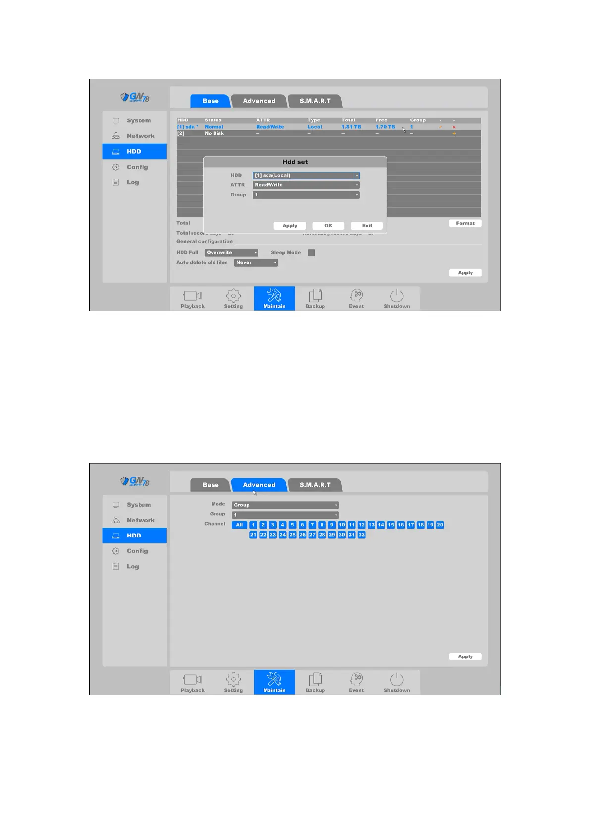 Click on the "Maintain --> HDD -> Advanced", as shown in figure 4-76.