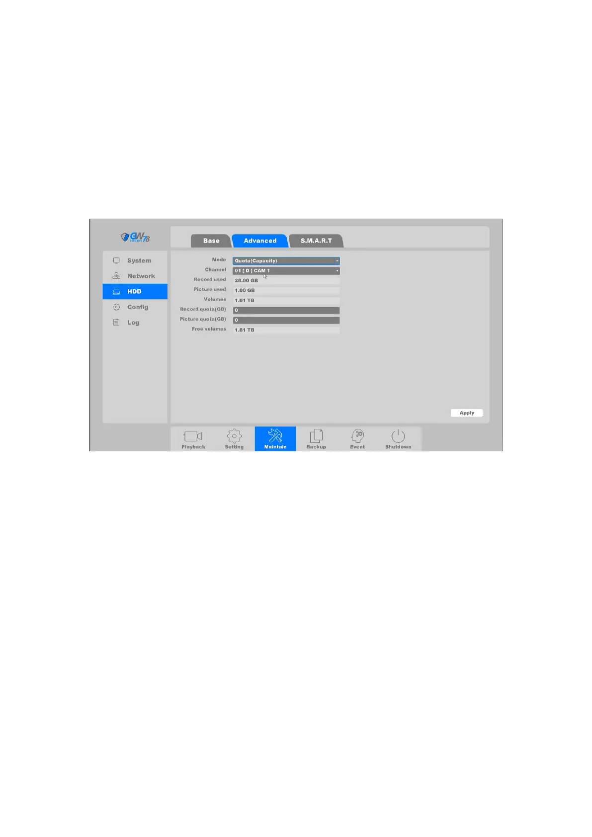i. Quota (Time): The quota of time mode supports set time for every channel manually.