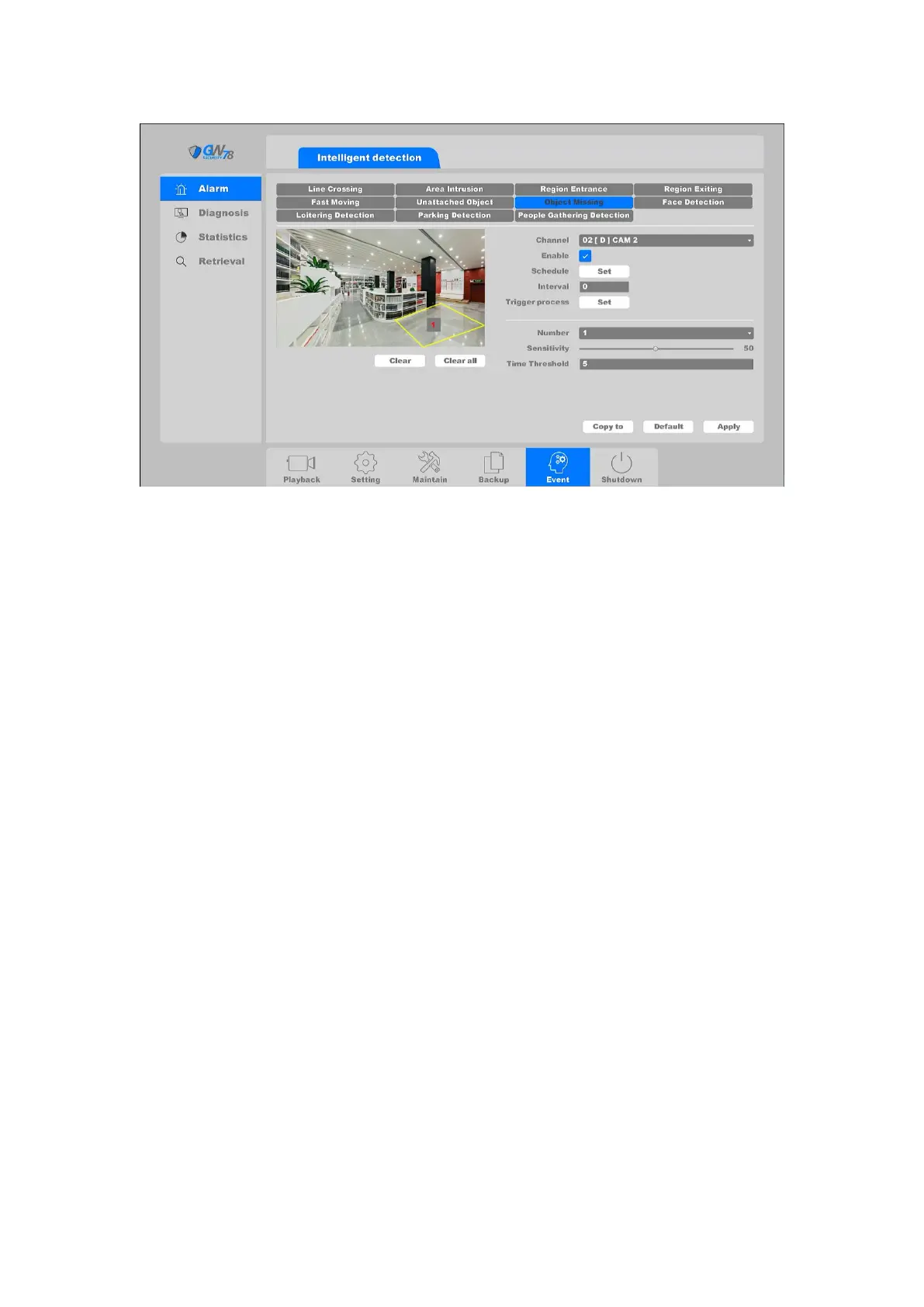Schedule: Set the time slot to detect intrusion. You can take the setting of chapter