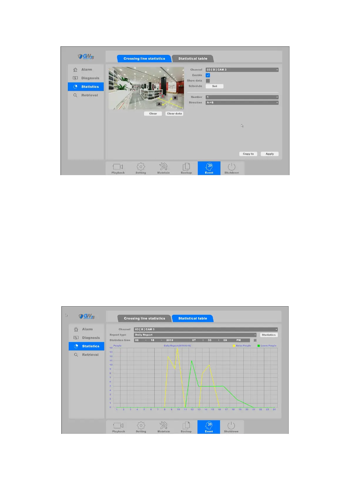 Here will show the Statistics for the people counting, you can select Report type as daily report,