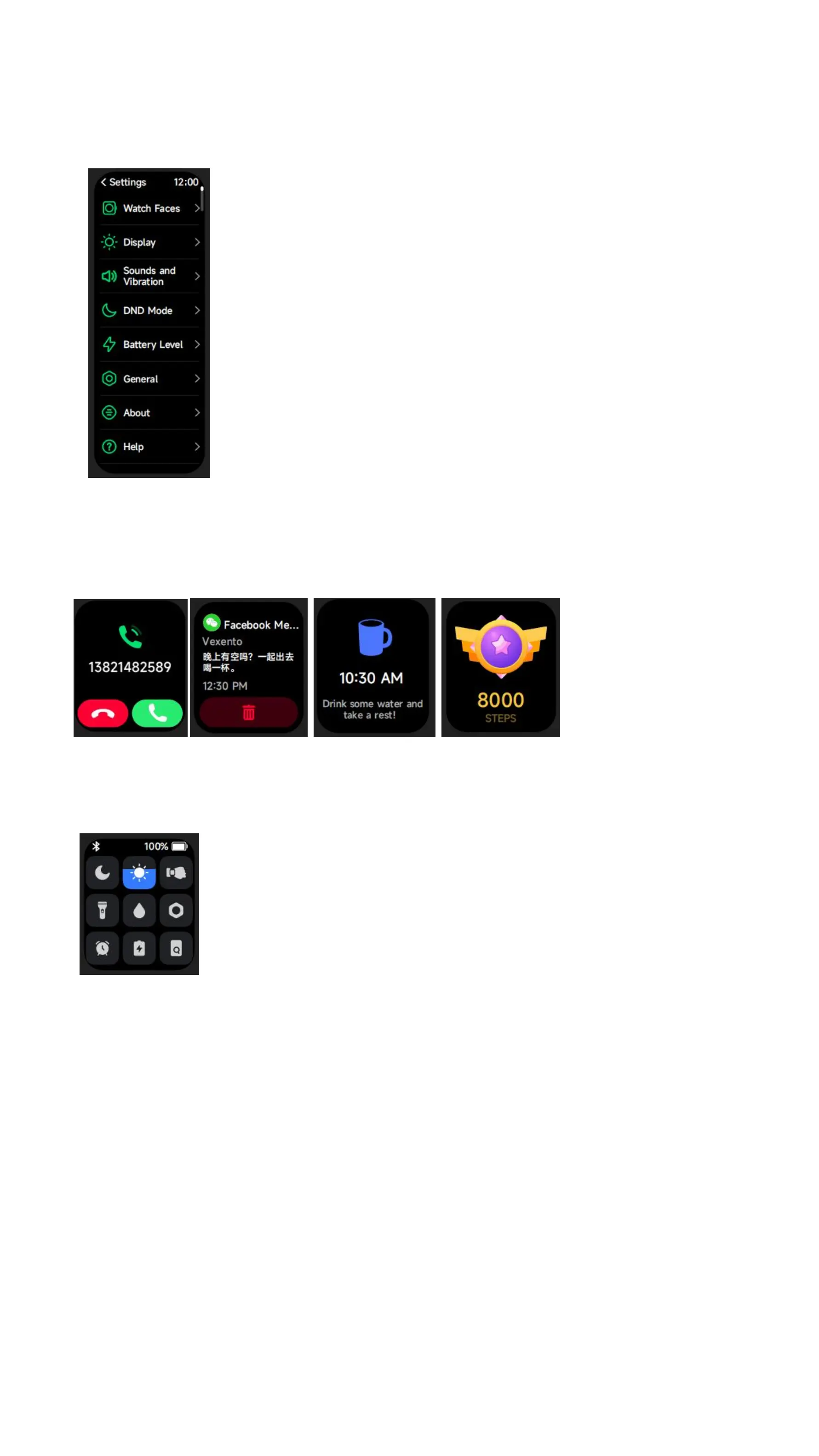 1. In the watch’s settings, you can set the screen-on time, ringtone volume and vibration, etc.