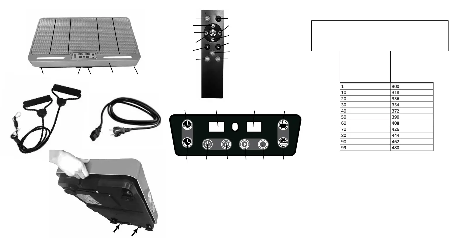Oscillations per minute at each speed level / Oscilaciones por minuto