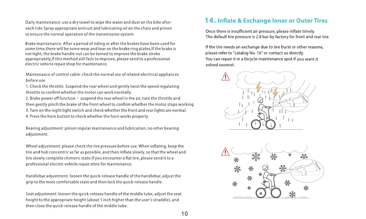 Wheel adjustment: please check the tire pressure before use. When inflating, keep the