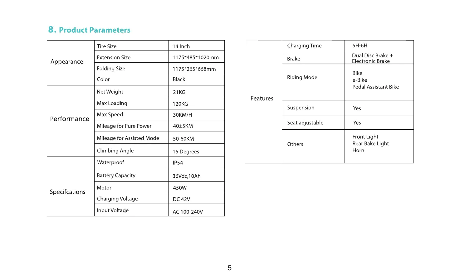 8. Product Parameters