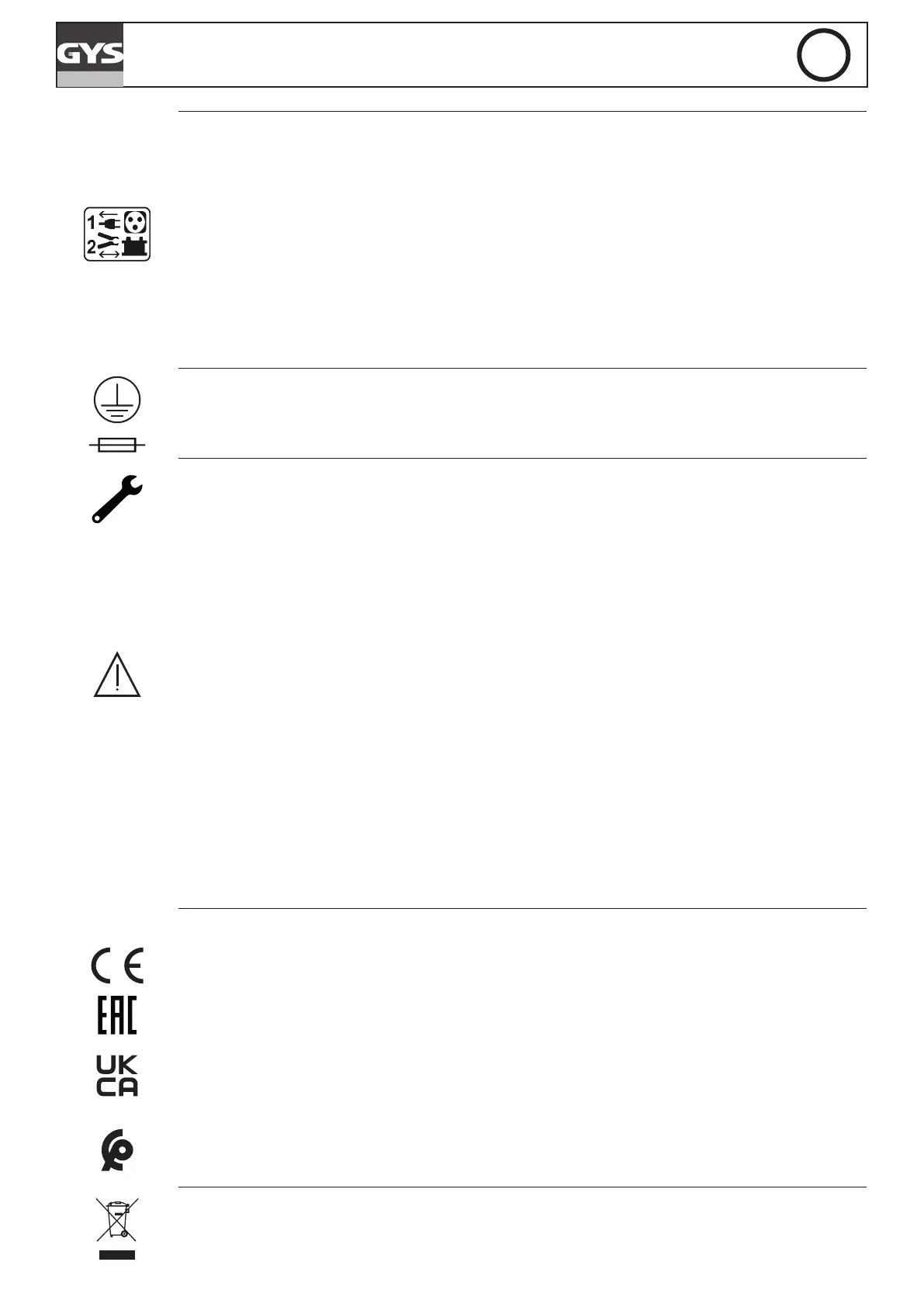• If the internal fuse is blown, it must be replaced by the manufacturer,