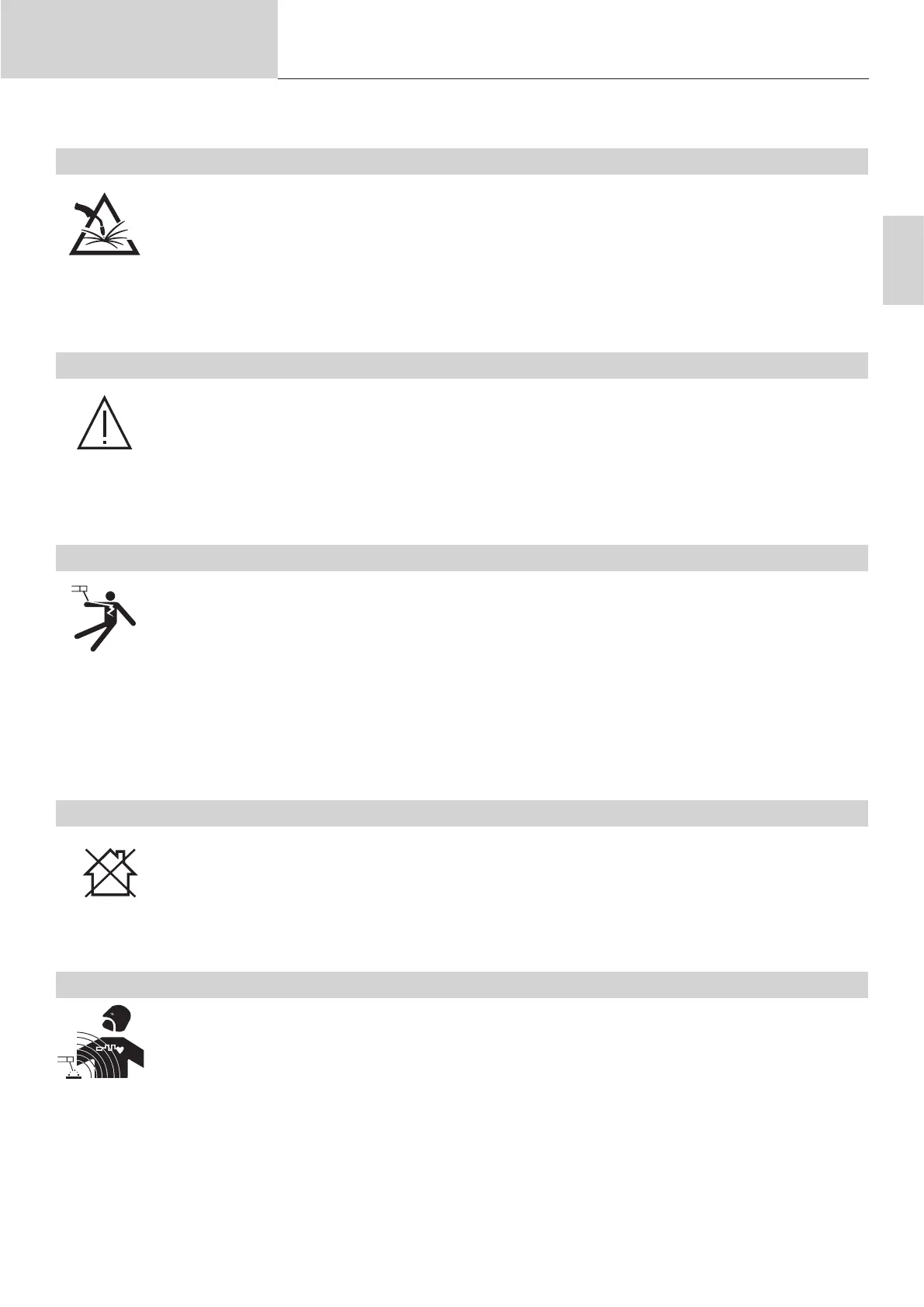 Grinding work must not be directed towards the source of the welding current or towards any ammable materials.