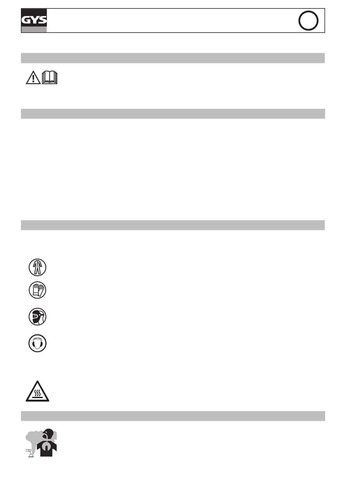 In order to protect you from burns and radiations, wear clothing without cuffs. These clothes must be insulated, dry, reproof and