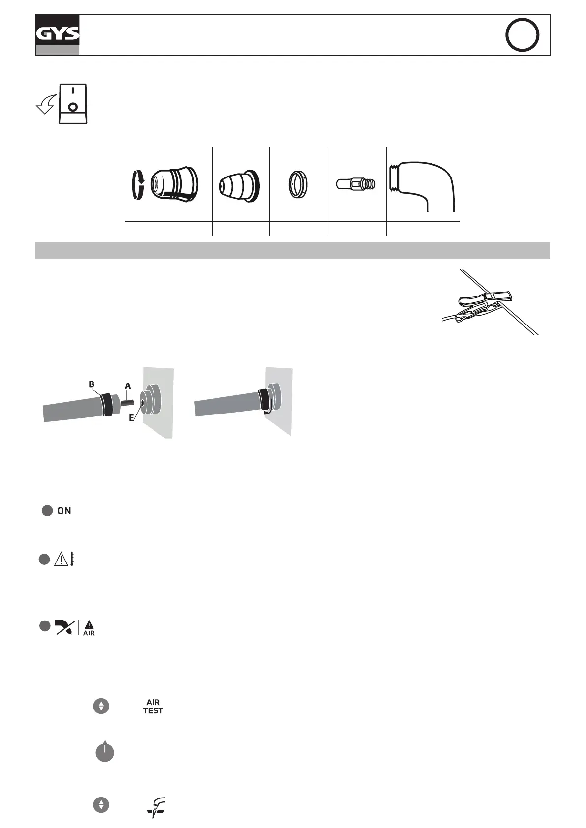 To use the torch, a complete set of consumables must be installed in the correct order: electrode, diffuser, tip and nozzle.