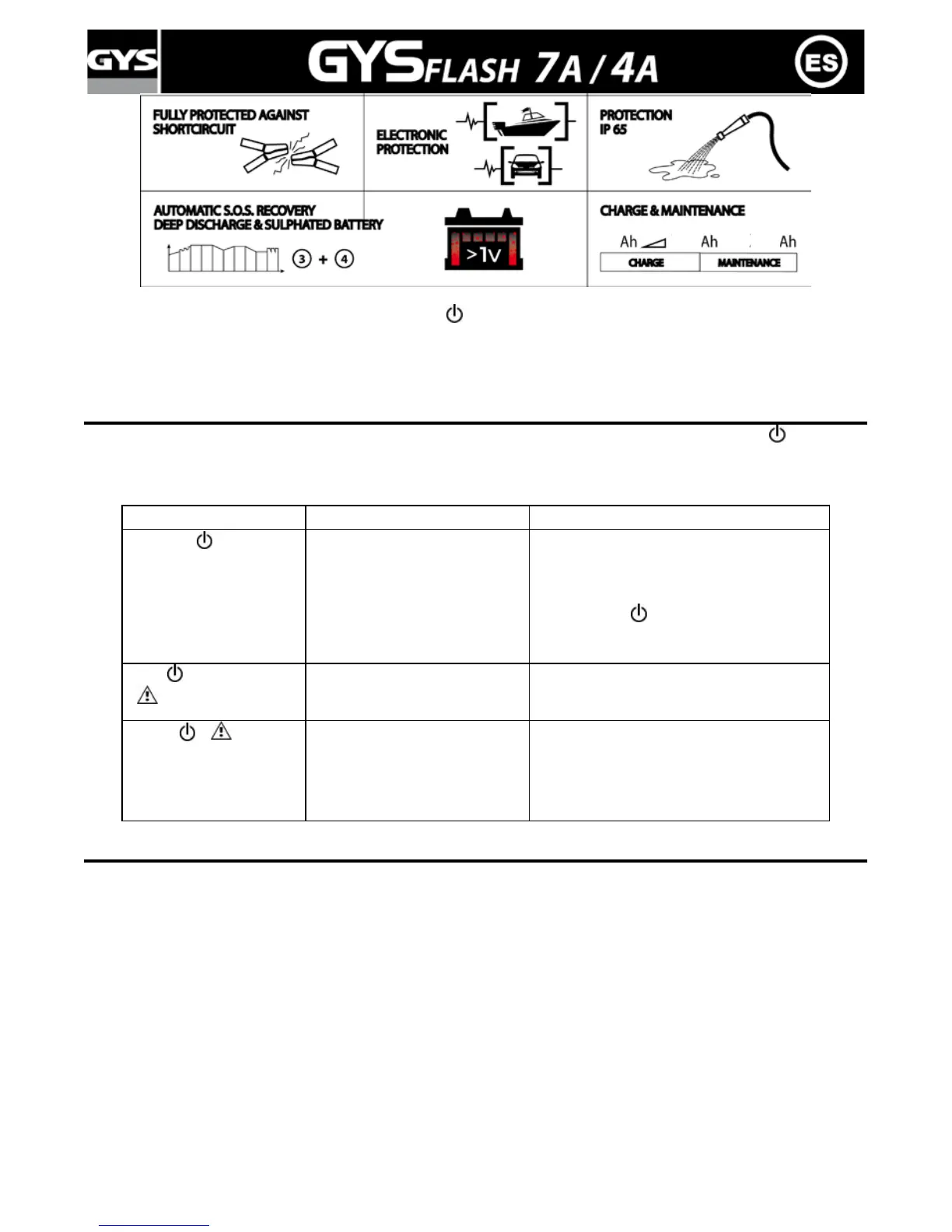 En caso de problema, el cargador se pone automáticamente en protección y enciende el indicador ( ). Con