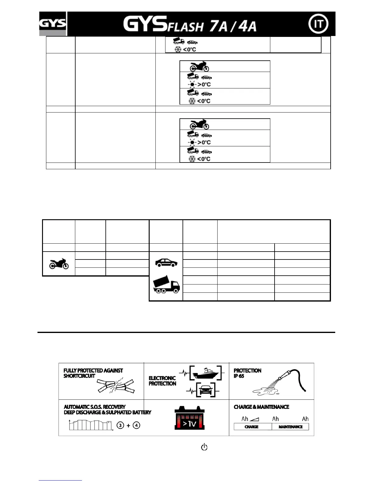 Lo Gysflash possiede un insieme di dispositivi che lo proteggono dai corto-circuiti e dalle inversioni di polarità.