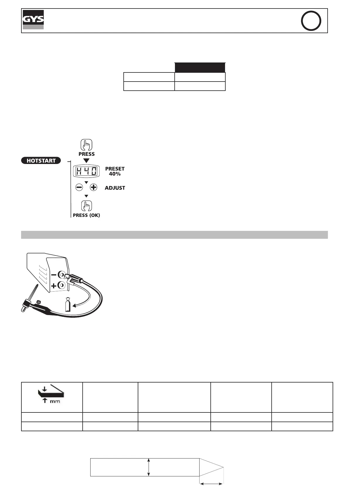 5. Stellen Sie den gewünschten Schweißstrom (Anzeige (1)) mit der Taste(4) ein, je