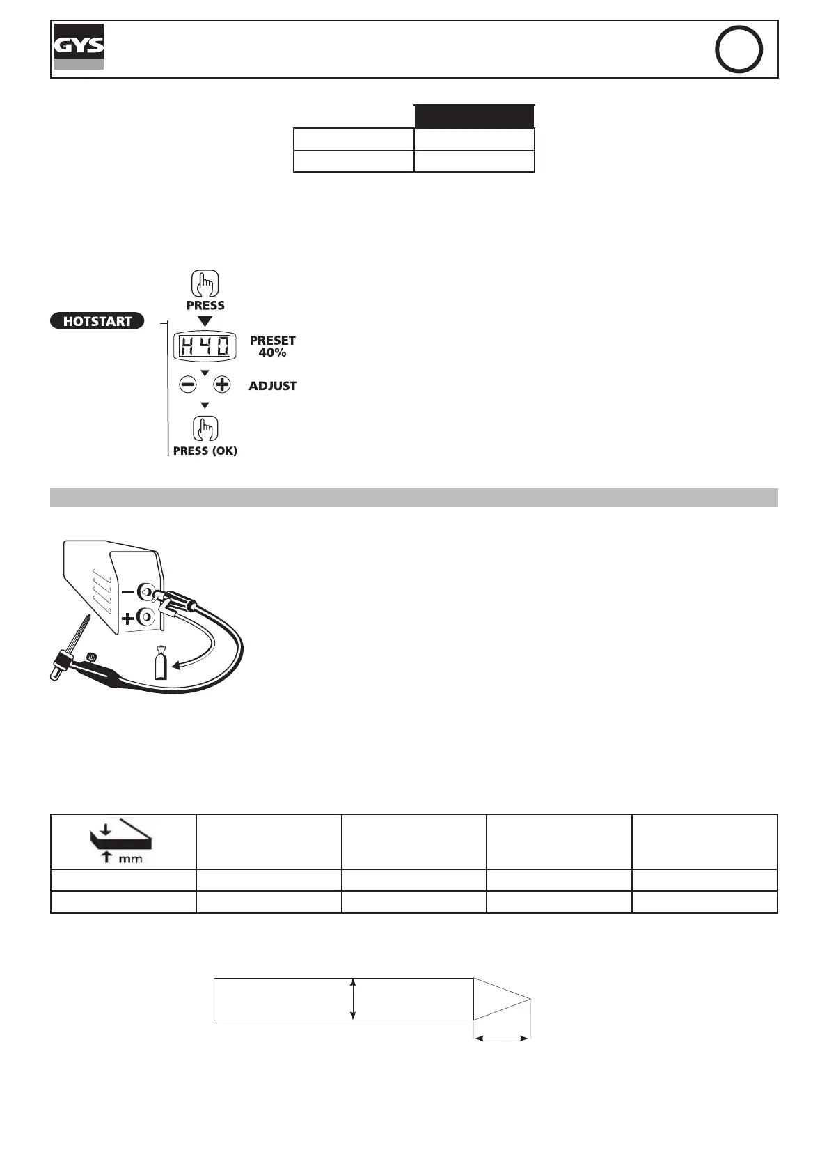 Hot start faible, pour les tôles nes– Hot start élevé pour les métaux difciles à souder (pièces sales ou oxydées)