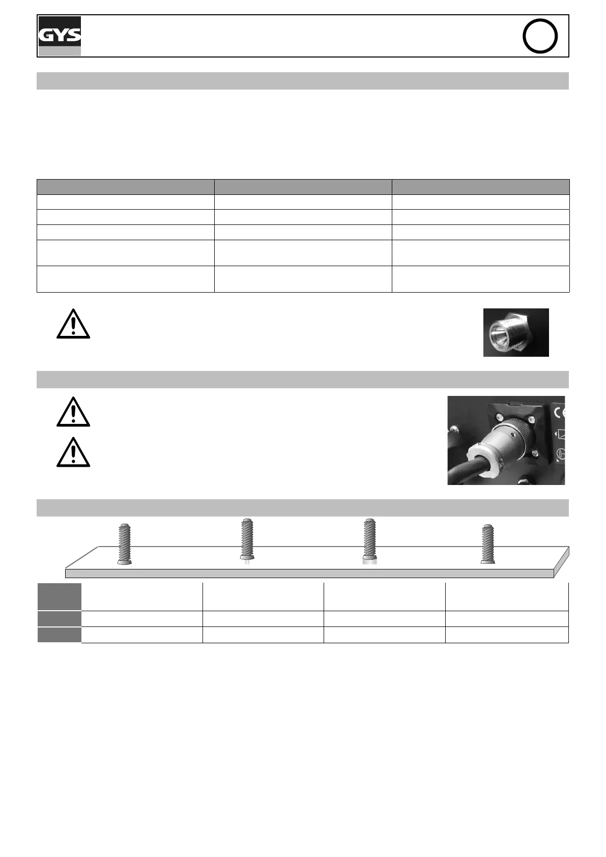 The following table lists the gases required depending on the inserts to be welded and their material. This table is given